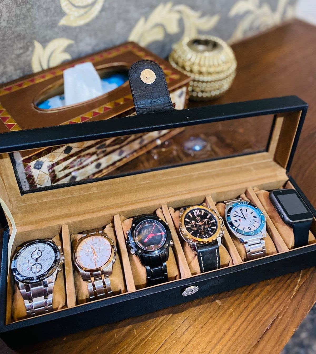 Display and protect your diverse watch collection with our watch box, offering various slots to accommodate all sizes and styles.