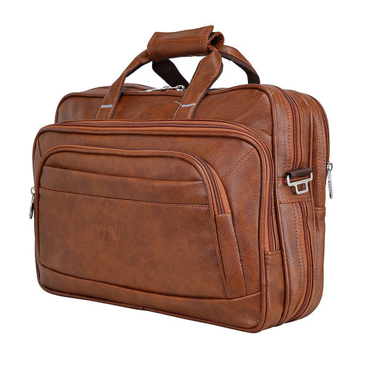 Expandable Leatherette Tan Unisex Office Laptop Messenger Bag