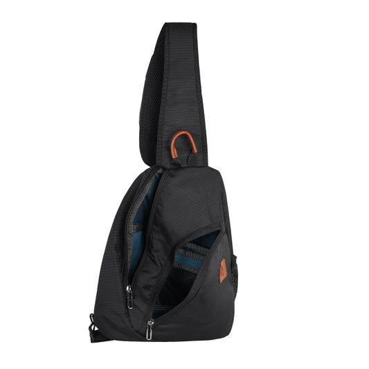 Fly Fashion Nylon Cross Body Chest Sling Bags for Mens & Womens Stylish Sling Shoulder Bag Compact Outdoor Crossbody Messenger Backpack- Black