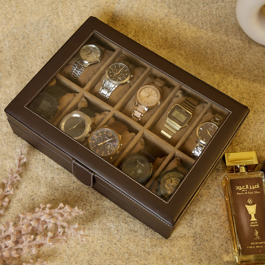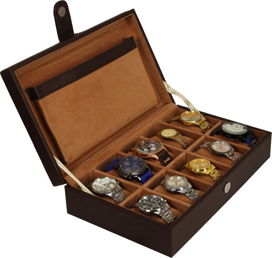 Leather World 10 Slots Elegant Watch Box With Viewing Window