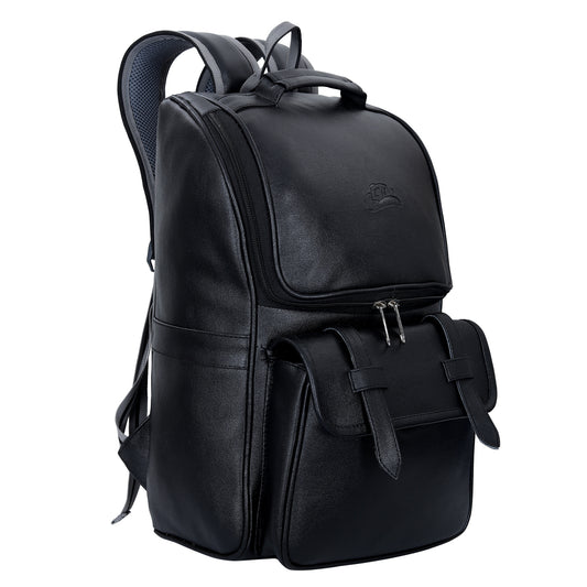 Leather World 14 inch Black Pu Leather Laptop College Casual Backpack Women (BP3081)