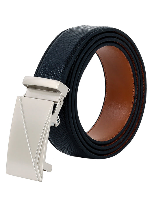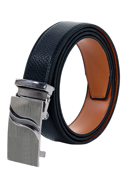 Leather World Auto Lock Buckle Vegan Leather Formal Black Belt For Men Elegant Gift Box