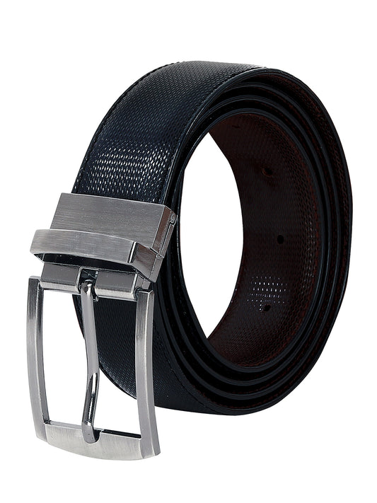 Leather World Reversible Pin Buckle Vegan Leather Formal Black/Brown Belt For Men with Double Sided Strap