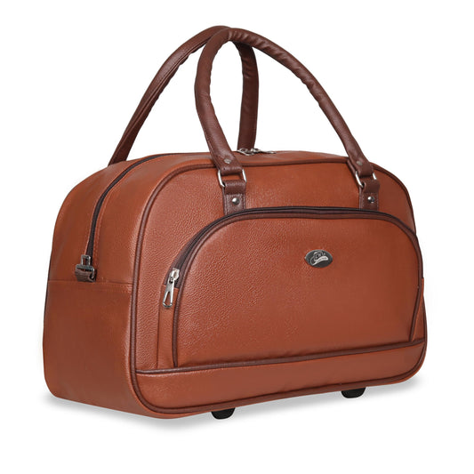 Leather World Leather Unisex Faux Leather Travel Duffle Bag Weekender Bag (Tan)