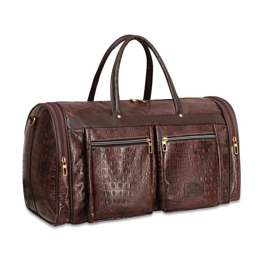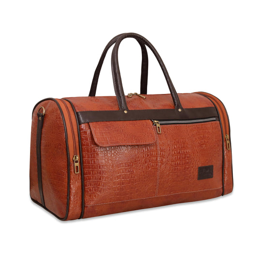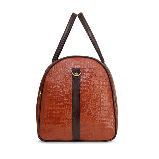 Leather World Duffel Bag Textured Leatherette Luggage Duffle Weekender Bag for Travel - Men and Women's (Brown)