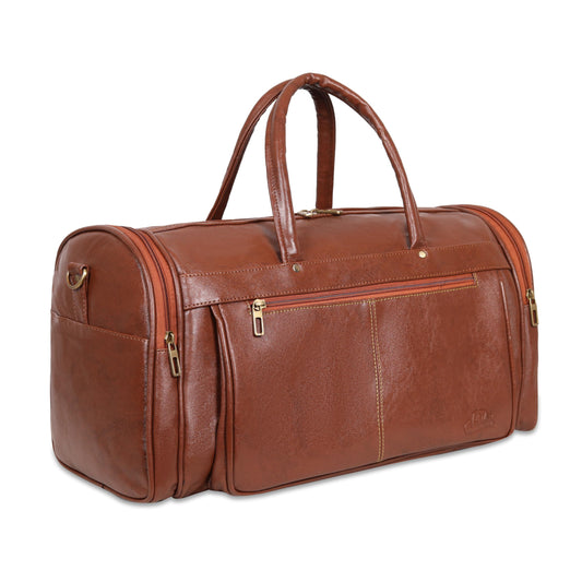 Leather World Leather Unisex Faux Leather Travel Duffle Bag Weekender Bag (Brown)