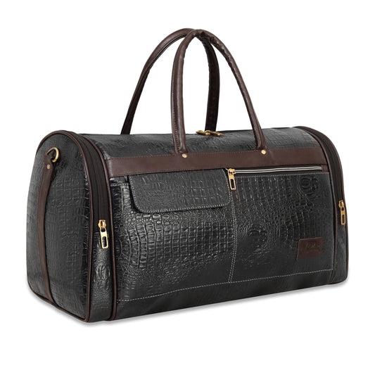 Leather World Vegan Leather Black Textured 18 Inch Travel Duffle Luggage Bag for Men Women
