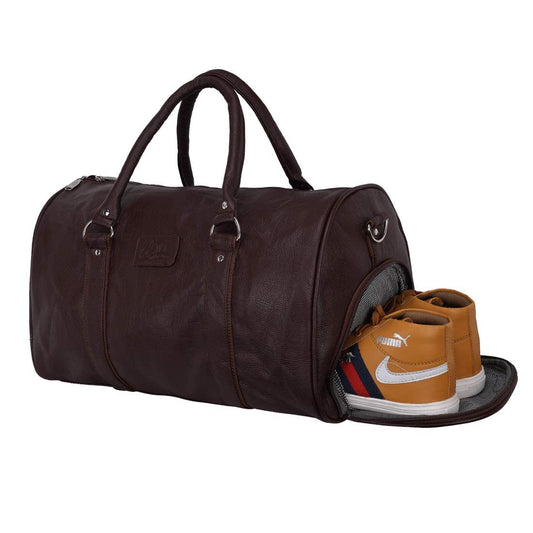 Leather World Brown Pu Leather Sports Gym Duffle Bag with Shoe Compartment