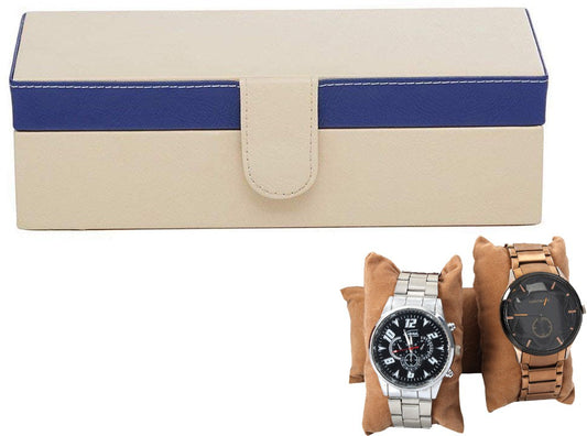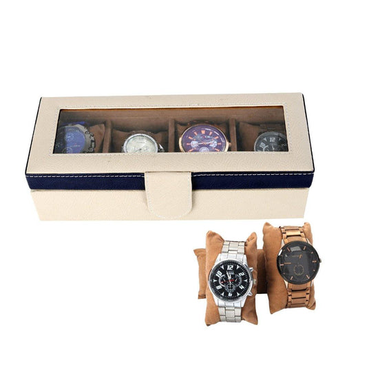 4 Slots Stylish Beige Watch Box with Viewing Window