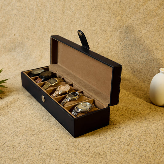 6 Slots Classy Black Watch Box Organizer with Plain Leather Finish