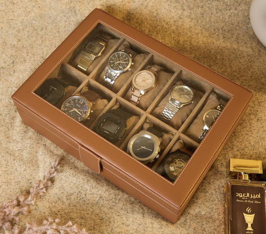 Leather World 10 Slots Elegant Watch Box With Viewing Window