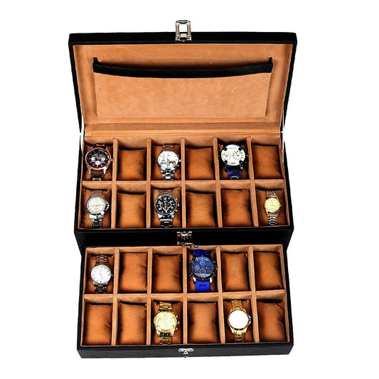 Leather World Unisex Classical 24 Slots Watch Organiser Box