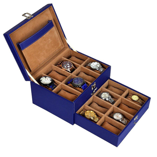 Leather World Unisex Classical 16 Slots Watch Organiser Box