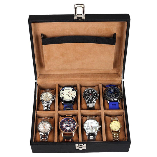 8 Slots Elegant Watch Organizer Box With Plain PU Leather Finish