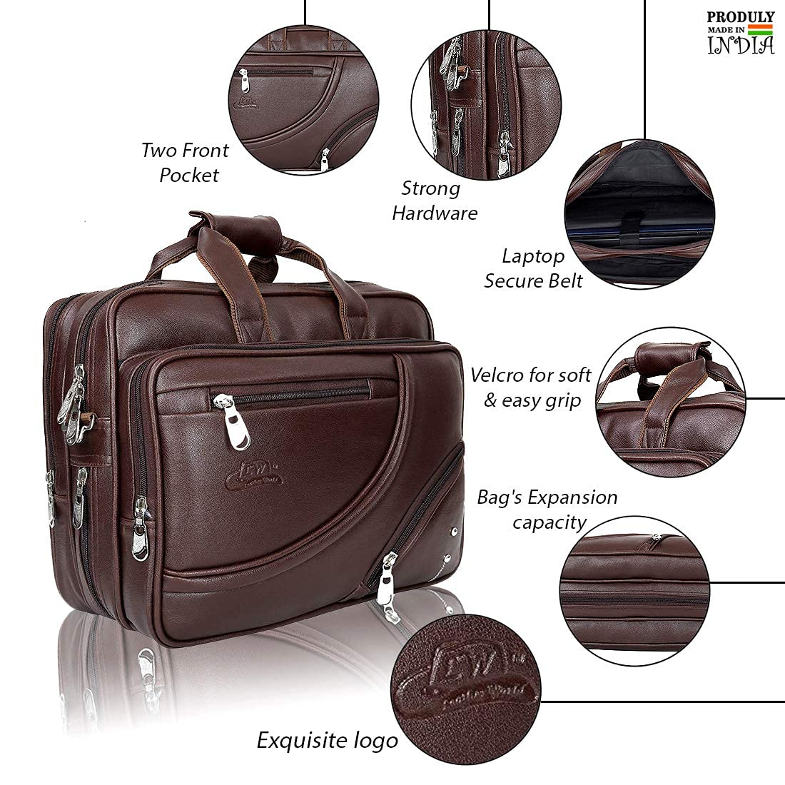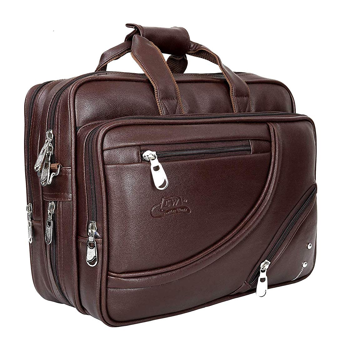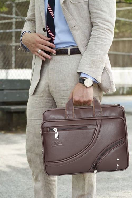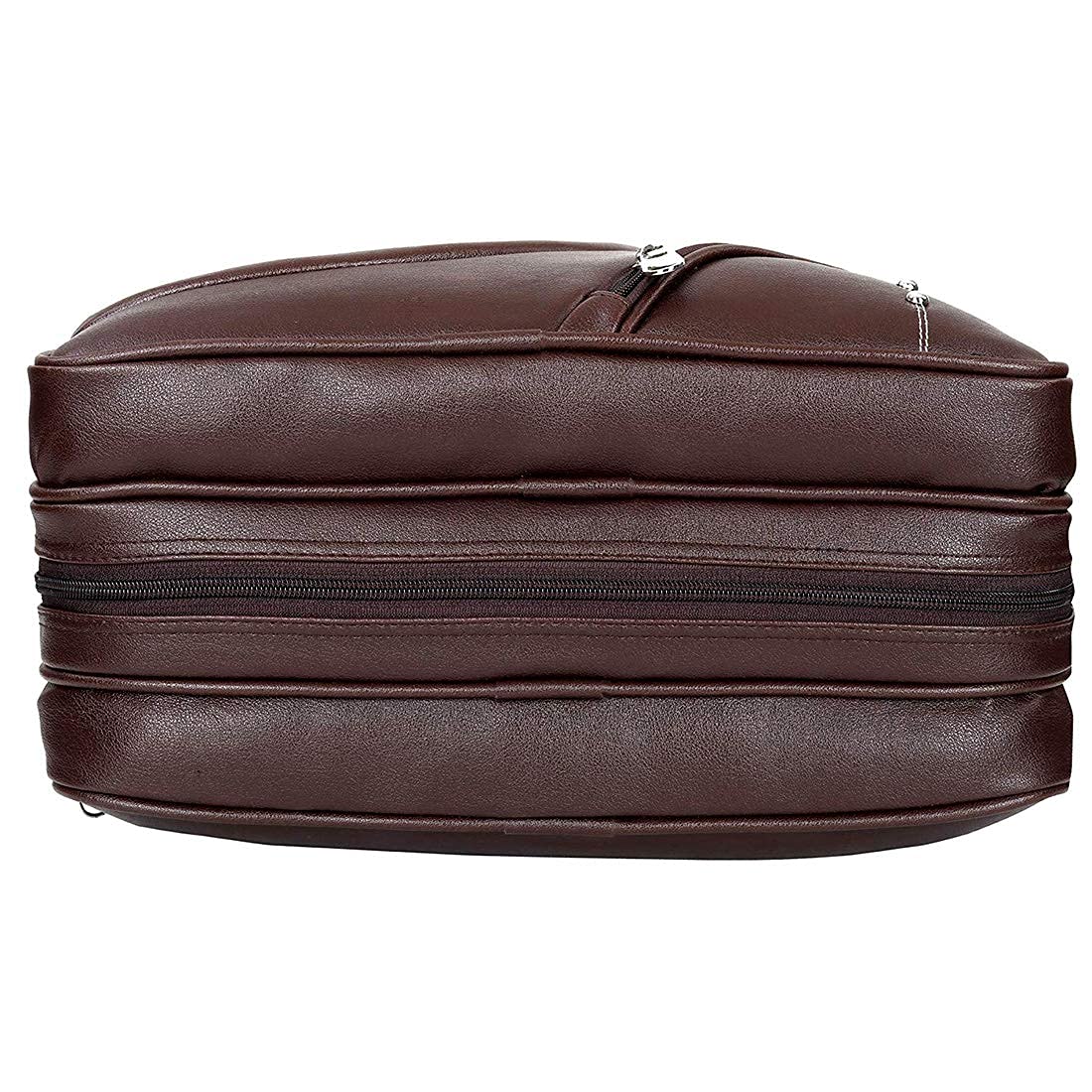 Leather World Pu Leather Expandable 15.6 inch Laptop Bag Office Bag for Men and Women Briefcase- Brown