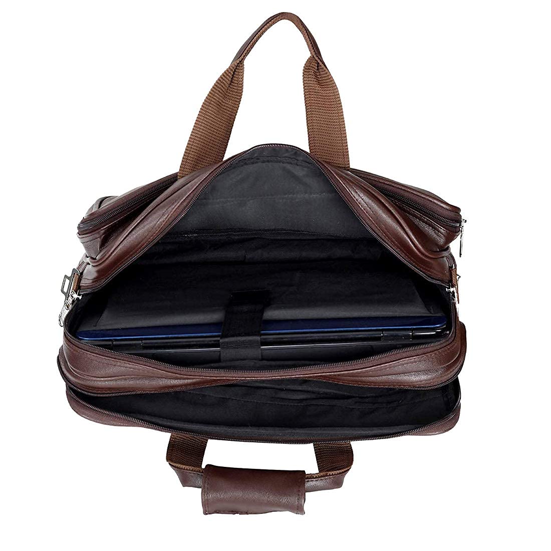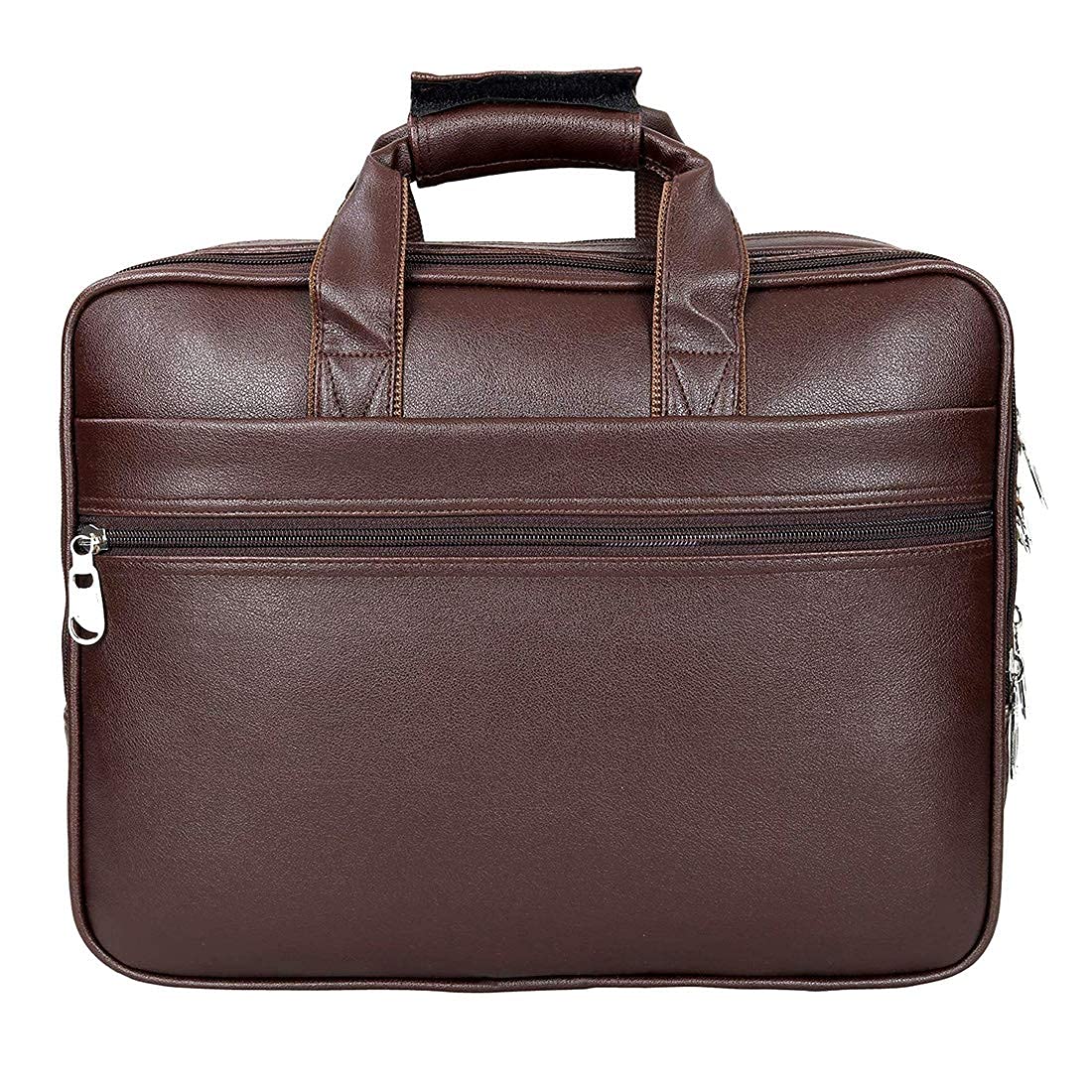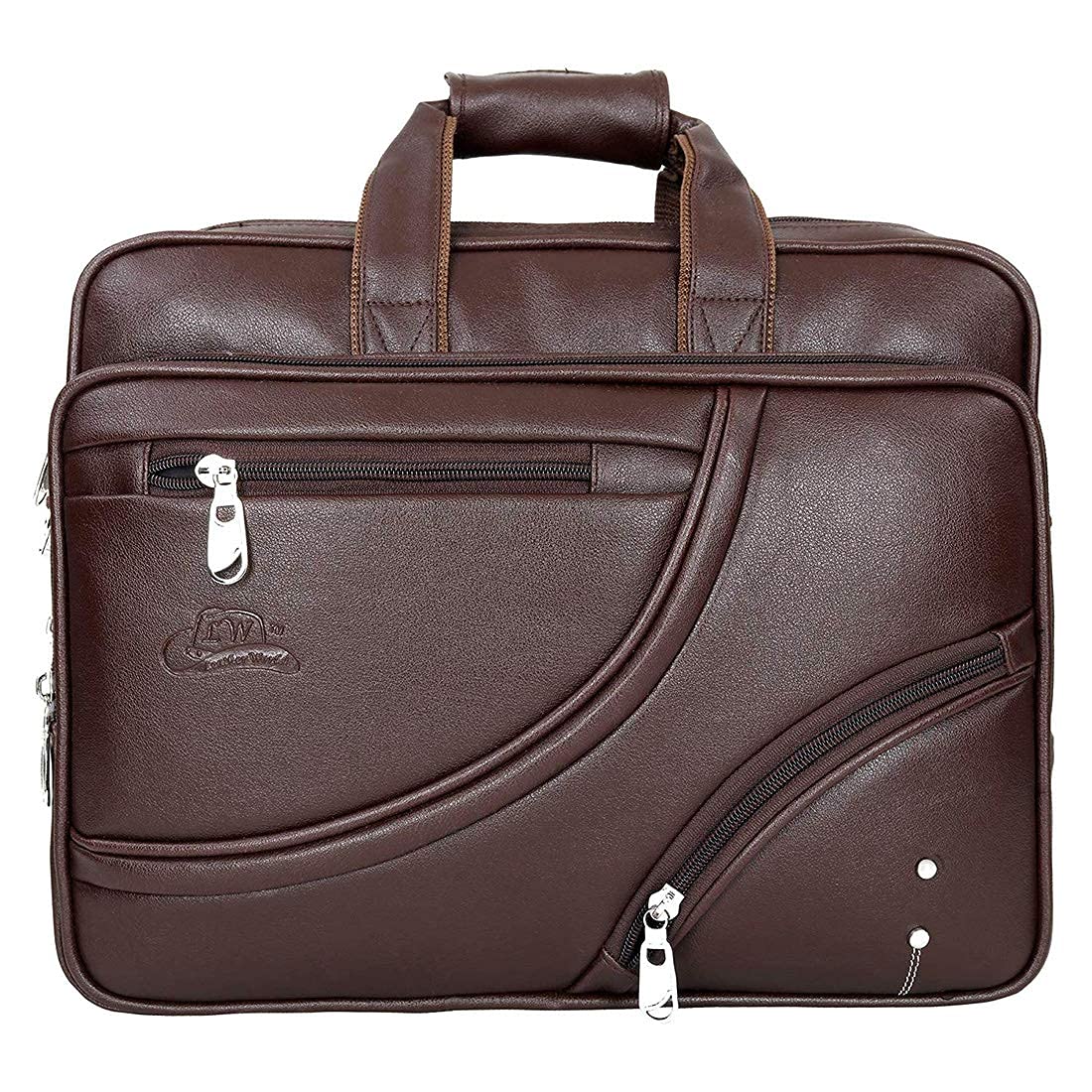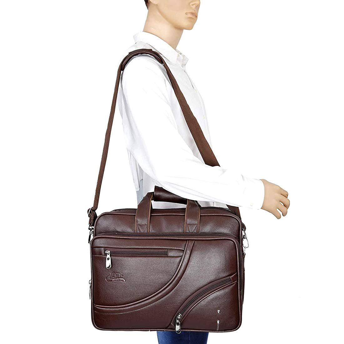 Leather World Pu Leather Expandable 15.6 inch Laptop Bag Office Bag for Men and Women Briefcase- Brown